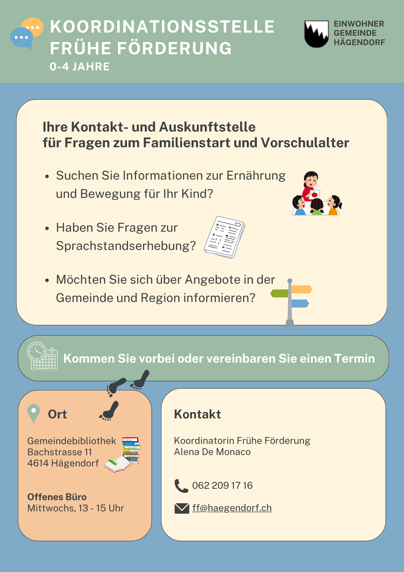 Unter «Dokumente» finden Sie den Flyer zur Koordinationsstelle Frühe Förderung.